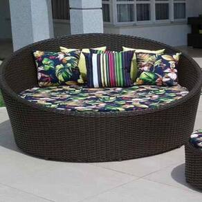 A estrutura de alumínio pode ser molhada e utilizada em áreas abertas, exposta ao sol e chuva. O estofado, por mais que seja o impermeável da Karsten, é resistente à água (se cair um copo de água por exemplo, não haverá problema), mas não pode ficar totalmente exposto a chuva.