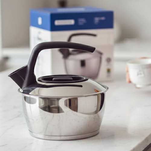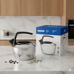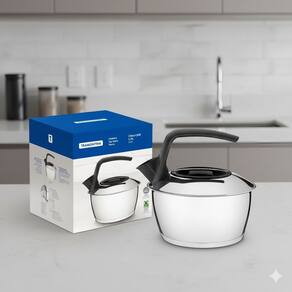 - **Modelo:** Chaleira Tramontina em Aço Inox com Fundo Triplo Cabo Preto 1,5 L