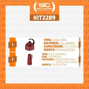 Chaleira Alumínio Paris 1,9l Antiaderente Vermelha com Bule Garrafa Térmica 1L Vermelho Tramontina