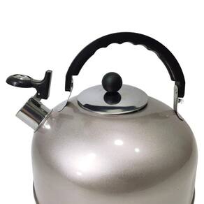 Chaleira apito para cozinha com tampa e alça em inox 2,5l 12582 Cor: inox A chaleira de aço inoxidável com apito é a adição perfeita à sua cozinha, combinando elegância e funcionalidade para tornar o processo de preparação de chá e café uma experiência prazerosa e eficiente. O acabamento em aço inoxidável confere uma aparência elegante, tornando-a um elemento decorativo atraente na sua cozinha, o apito integrado é uma característica prática que torna a utilização da chaleira ainda mais conveniente. Ele emite um sinal sonoro distinto quando a água atinge o ponto de fervura, evitando que você se esqueça da chaleira no fogão. O cabo ergonômico e resistente ao calor proporciona uma aderência confortável e segura, facilitando o despejo preciso e evitando acidentes. Seja para um chá da tarde relaxante ou uma xícara de café revigorante, a chaleira de aço inoxidável com apito é uma escolha elegante e funcional que combina estética moderna com praticidade. Garanta já a sua