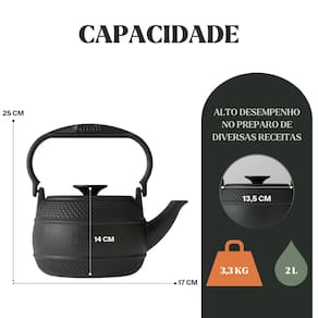 Modelo: Chaleira Artesanal Alça e Tampa de Ferro 13,5x14cm 2L Material da peça: ferro fundido Material da tampa: ferro fundido Material da alça: ferro Medidas: 13,5 × 14 cm Capacidade: 2 L Peso aproximado: 3,425 kg Compatível com fogão: indução, gás, elétrico, vitrocerâmico, lenha, forno Já vai curada. Pronta para uso Revestimento atóxico camada protetora Garantia: 90 dias contra defeitos de fabricação A Chaleira Artesanal Panela Mineira é ideal para aquecer água, cafés, chás e infusões com eficiência térmica superior. O ferro fundido aquece de forma uniforme e mantém o calor por mais tempo, permitindo um preparo tradicional e cheio de sabor. A tampa e a alça em ferro reforçam a durabilidade e o estilo rústico característico da Panela Mineira. Diferente de utensílios comuns, os de ferro fundido Panela Mineira são livres de toxinas, duram por gerações e entregam tradição todos os dias, dentro e fora da cozinha. Ideal para bares, hotéis, pousadas, cafeterias e também para o uso diário em casa. CONTEÚDO DA EMBALAGEM 1x Chaleira Artesanal Alça e Tampa de Ferro 13,5x14cm 2L 1x Tampa de Ferro CUIDADOS APÓS O USO Lave com água e sabão neutro Seque ao fogo Guarde em local seco e arejado CURA DO PRODUTO O ferro fundido pode oxidar com o tempo. Se isso acontecer, siga este processo: Lave, seque ao fogo e aplique óleo em toda a peça Aqueça por 15 minutos na chama direta Repita conforme necessário