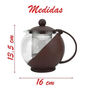 - Material: Copo em vidro, partes revestidas em plástico e coador inox;