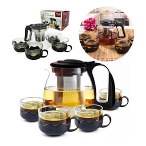Chaleira Bule Com Infusor 1L e 4 Xícaras Em Vidro Inox Cozinha Jarra Esquentar Fogão Água Coador Transparente Alça imagine-se saboreando um chá fresco e delicioso, preparado à perfeição na sua própria casa, servido em elegantes xícaras de vidro. Apresentamos o Conjunto de Chaleira Bule com Infusor de 1L e 4 Xícaras em Vidro - uma experiência de chá que eleva os sentidos. Este conjunto é um verdadeiro tesouro para os amantes do chá. A chaleira, feita com materiais de alta qualidade, vidro, plástico e inox, possui um design moderno e sofisticado. O infusor embutido é uma maravilha de conveniência, permitindo que você escolha o chá de sua preferência ou crie seu próprio blend, adicionando a água fervente para uma infusão perfeita em poucos minutos. As xícaras que acompanham o conjunto são elegantes, combinando perfeitamente com a chaleira. Com capacidade para 150ml, elas são perfeitas para uma pausa para o chá à tarde ou para compartilhar uma experiência de chá com os amigos. Prático para lavar, a chaleira e as xícaras são fáceis de limpar. Basta retirar o infusor e descartar os resíduos do chá. Toda a beleza e funcionalidade deste conjunto está nas suas mãos com um peso confortável de 230g para a chaleira e 96g para cada xícara. Este Conjunto de Chaleira com Infusor e 4 Xícaras em Vidro é mais que um simples acessório de cozinha, é uma experiência de chá elevada. Ao adquirir este conjunto, você está investindo em momentos de tranquilidade, prazer e bem-estar. Não perca tempo, adquira já o seu conjunto e transforme cada xícara de chá em um momento de prazer único e inigualável. A vida é curta demais para beber chá de qualidade inferior. Invista em você, invista em seus momentos, invista no Conjunto de Chaleira Bule com Infusor de 1L e 4 Xícaras em Vidro.