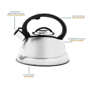 Chaleira Com Apito Indução 2,7 Litros Roma 4875 Inox- Brinox INFORMAÇÕES DO PRODUTO Com design elegante e sofisticado, a Chaleira com apito de aço inox da linha Roma Brinox tem 2,7 litros de capacidade e conta com exclusivo fundo de indução que pode ser usado em qualquer tipo de fogão. Seu acabamento polido, traz brilho intenso ao produto. Resistente e fácil de limpar, a Chaleira possui cabo de nylon que não esquenta, deixando o manuseio do produto mais seguro e tranquilo, o gatilho de abertura na alça traz mais praticidade na hora de servir, proporcionando conforto e segurança. Esta versão disponível vai trazer mais modernidade à sua cozinha. Todas as características que compõem esse produto foi desenvolvido para você que busca conforto e rapidez na hora de fazer suas receitas. ESPECIFICAÇÕES:- Marca: Brinox- Cor: Inox- Linha: Roma- Formato: Redondo- Design: elegante- Material: Aço inox- Material do cabo: nylon- Acabamento: polido- Capacidade: 2,7 litros- Possui apito: sim- Tipo de fundo: indução- Conteúdo da embalagem: 01 chaleira e manual- Dimensões aproximadas da embalagem: 24 x 23 x 25cm- Peso aproximado da embalagem: 0,800kg Atenção: pode ser utilizado em qualquer tipo de fogão