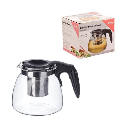 Chaleira com Infusor Venice Home 1L - Western A Western Home produziu esta linda Chaleira pensando em suas necessidades com objetivo de dar mais praticidade á sua cozinha, um produto de qualidade feita em inox e vidro, com designer moderno e sofisticado. Características:Material: Polipropileno, Inox e VidroMarca: Western HomeCapacidades: Chaleira: 1 Litro/ Infusor: 167ml Aproximado Dimensões aproximadas: 17x12,5x11,5cmEspessura da borda: Chaleira: 2mm/ Infusor: 1mmPeso Aproximado: 200g Observações:Não pode ir ao micro-ondas.Não pode ir ao lava-louças.Não pode ir ao forno e fogão.Não pode ir a chamas direta.Temperatura máxima suportada é de 100C.Nunca deixe líquidos fervendo sem acompanhamento.Manter fora do alcance das crianças. Instruções:Ferva a água em outro recipiente a parte.Não coloque a chaleira de vidro em contato com o fogo.Não coloque a chaleira em uma superfície fria ou molhada quando for adicionar água quente.Adicione a água quente no infusor junto com as folhas ou sachês da sua preferência.Feche a tampa.Aguarde 5 minutos e sirva. Atenção: As cores e detalhes podem variar entre as imagens mostradas acima e o produto, Imagem meramente ilustrativa. Conteúdo da Embalagem: 01 CHALEIRA com INFUSOR VENICE 1L Garantia Fabricante : Contra defeitos de fabricação.