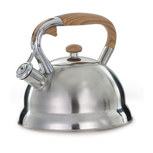 Embalagem: 01 Chaleira em Inox com Apito 2,5 Litros Dimensão Aproximada (AxLxC): 17 x 20 x 20 cm Composição: Inox e Cabo de bambu