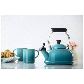 Feito de aço carbono leve para ferver rapidamente a água. O esmalte de porcelana vibrante é não reativo, não poroso e resiste a manchas, ferrugem, arranhões e absorção de sabor. Corrigidos alertas de apito de tom único quando a água atinge o ponto de fervura, e podem ser facilmente abertos para despejar. Marcações convenientes dentro das chaleiras indicam os níveis mínimo e máximo de enchimento de água. Alças pretas e suportes de alça de aço inoxidável garantem um manuseio . Compatível com todos os cooktops. Lavar à mão com água morna e sabão Marca: Não Informado