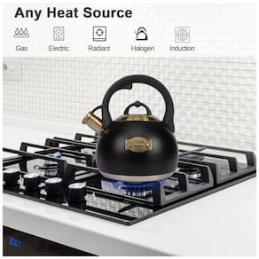 Design de aço inoxidável Todo o corpo da chaleira é feito de aço inoxidável, o corpo grosso tornando o mais durável e resistente. Fundo de metal de 5 camadas com alta condutividade térmica para aquecimento mais uniforme e vida útil mais longa. Som de assobio perfeito da chaleira esta chaleira para fogão tem uma tampa bem ajustada que mantém o vapor na chaleira quente para um aquecimento rápido e apitos agradáveis quando a água ferve, alto o suficiente para alertá lo quando você estiver ocupado no próxima sala. Bules de gatilho de uma mão Este bule de chá para fogão com mecanismo de gatilho de uma mão que permite uma operação conveniente com uma mão. Sutable for Various Stovetops Bule adequado para qualquer fonte de calor, incluindo fogão de indução, fogão elétrico, fogão a gás, fogão radiante. Dicas de aviso use uma chama de aquecimento pequena ou média para ferver a água para evitar que o corpo dos bules desbote ou desbote a cor. É um fenômeno normal e pode ser removido se o aço inoxidável produzir ferrugem ou calcário dentro da chaleira