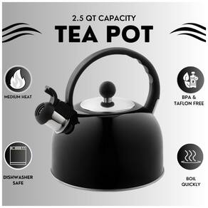 Acabamento exterior elegante Feito com aço inoxidável resistente ao calor premium, sua chaleira de apito de longa duração pode suportar o uso a longo prazo e todos os dias. Seu acabamento em aço inoxidável é fácil de manter limpo e arrumado e é uma adição atraente para a decoração da sua cozinha. 100 livre de teflon e livre de BPA. Chaleira de assobio pode aquecer e fervura rápida com grande capacidade 2,5 litros de água ou líquido para o seu chá. Despeje até 10,5 xícaras de líquido desta chaleira Alça ergonômica de empunhadura fria Alça à prova de calor As curvas formadas da alça também garantem a segurança ao despejar, então não importa o quão quente a base fique, suas mãos e dedos ficam protegidos livres do calor e do vapor Agradável som de assobio quando a temperatura ideal é alcançada Com apitos de um tom para lembrá lo da chaleira fervida quando você não estava na cozinha. O bico de pressão com o polegar facilita o derramamento basta inclinar, abrir e despejar em um único movimento Marca: Não Informado
