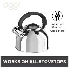 Finamente trabalhada a chaleira de assobio OGGI usa aço inoxidável profissional de qualidade alimentar e é construída com o melhor artesanato para garantir que seja resistente à ferrugem e corrosão e aqueça rapidamente. Apito alto os bules de chá para fogão precisam ser ouvidos e esta chaleira tem um apito alto e automático para chamar sua atenção mesmo em uma cozinha barulhenta. GRANDE CAPACIDADE Esta chaleira de aço inoxidável tem o tamanho ideal para sua família e sua capacidade de 1.9 Litros é suficiente para fazer cerca de 10 xícaras de chá por vez. PUNHO E BICO S Alça de náilon fria ao toque com tampa de bico operada por gatilho para uso e fácil. Esta chaleira de fogão é reconfortantemente fácil de usar. PARA TODOS OS FOGÕES Adequado para fogão de indução, forno elétrico, fogões a gás e gás natural. Este bule de chá de fogão ferve rapidamente, mesmo em fogo médio Marca: Não Informado