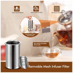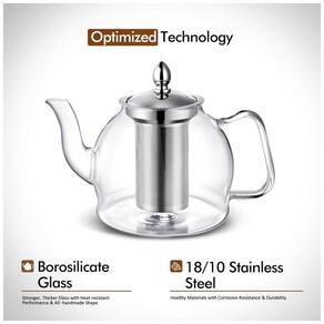 Este bule é totalmente artesanal, feito de vidro boro silicato resistente ao calor, especialmente projetado com bico que não goteja e cabo ergonômico perfeito para uma pegada robusta Filtro removível de infusão de malha de aço inoxidável de alta qualidade 18, 10 para chás soltos ou chás florescendo, a tampa se encaixa na cesta de chá quando inserida ou removida Este lindo bule pode ser colocado diretamente no forno de micro ondas ou em fogões a gás ou elétricos, use uma fonte de calor de nível médio para aquecer a água para a fermentação, seus deliciosos chás também podem ser reaquecidos no micro ondas, diretamente em fogões a gás ou elétricos, ou mantido quente em aquecedores de bule de chá de chama aberta, também pode ser colocado na geladeira ou sob luz solar direta para a preparação de cerveja fria O corpo de vidro de boro silicato foi otimizado para ser mais espesso, é mais forte para o uso diário e livre. Suporte superior para máquina de lavar louça ou limpo à mão