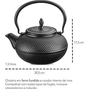 Chaleira de Ferro Fundido MTA 1,5L – Elegância e Durabilidade A Chaleira de Ferro Fundido MTA 1,5L é perfeita para quem busca qualidade e sofisticação na hora de preparar bebidas quentes. Fabricada em ferro fundido de alta resistência, mantém a temperatura por mais tempo, proporcionando um aquecimento uniforme da água. Seu design clássico e robusto combina com qualquer cozinha, garantindo durabilidade e eficiência. ???? Capacidade: 1,5 litros???? Material: Ferro fundido resistente???? Retenção térmica: Mantém a água quente por mais tempo???? Alça reforçada: Maior segurança no manuseio???? Compatível com fogão a gás, elétrico e indução Ideal para preparar chás e cafés com um toque tradicional e sofisticado!