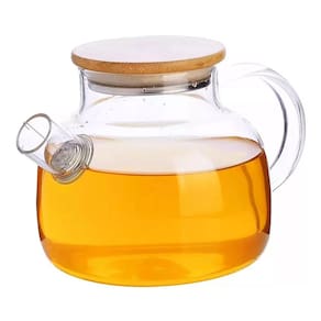 Chaleira de vidro tampa de bambu 1l resistente a calor bule ========== sobre o produto ========== A chaleira de vidro com tampa de bambu 1l é perfeita para quem aprecia um chá preparado com elegância e funcionalidade. Fabricada em vidro borossilicato, resistente a altas temperaturas, permite o aquecimento direto no fogão e mantém a transparência para acompanhar a infusão das ervas. Sua tampa de bambu proporciona um toque natural e conta com vedação eficiente para preservar o sabor e aroma das bebidas. Com um design sofisticado e minimalista, é ideal para o dia a dia ou ocasiões especiais. ========== especificações ========== Fabricada em vidro borossilicato, resistente a choque térmico. Capacidade de 1 litro, ideal para preparar chás e infusões. Tampa de bambu com vedação de silicone para melhor conservação do aroma. ========== ficha técnica ========== Medidas: 18 x 11 x 11cm Material: vidro borossilicato / bambu Marca: mori : 3 meses Estamos online para quaisquer dúvidas, Agradecemos e aguardamos o seu pedido. P: a chaleira pode ser Utilizado diretamente no fogão R: não, mesmo sendo resistente a calor, não é recomendável o colocar diretamente ao fogo P: a tampa de bambu é vedada para evitar vazamentos R: sim, possui uma vedação de silicone que ajuda a manter o aroma e a temperatura do chá. P: pode ir ao micro-ondas R: sim, a chaleira pode ser Utilizado no micro-ondas, mas a tampa de bambu deve ser removida antes do aquecimento. P: o produto é novo ou Marca: Não Informado