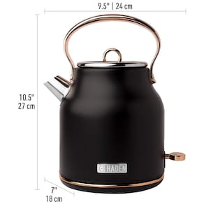 BASE SUPER ROBUSTA Projetado com uma base de 360 graus, medidor de água e filtro removível para máxima conveniência Vem com um plugue padrão americano de 2 pinos de 34 polegadas, 1500 W, 120 V 60 Hz MEDIDAS DE PROTEÇÃO Sem BPA, a proteção contra corte a seco por fervura é uma medida extra contra possíveis danos VEM COM LUZ INDICADORA Possui um interruptor liga, desliga com luz indicadora que acende ao ferver. Tempo de fervura 1,7L 710 1,0L 440 EXTRAS Filtro sobressalente incluído na caixa