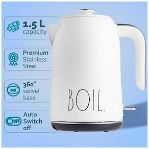 A chaleira elétrica da marca Rae Dunn é uma excelente opção para quem busca praticidade e eficiência na hora de preparar bebidas quentes. Com capacidade para 1.7L, você pode ferver água para preparar chá, café ou qualquer outra bebida em questão de minutos.