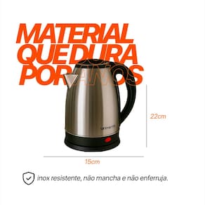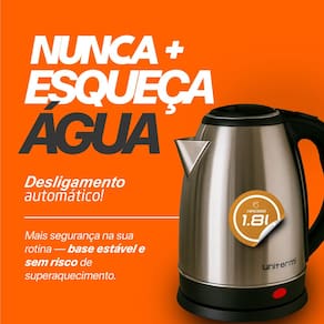 Capacidade de 1,8 litros, ideal para uso doméstico Voltagem: 110 Volts Material em inox resistente e fácil de limpar Base com conexão giratória Sistema de desligamento automático ao ferver a água Design elegante e funcional para combinar com qualquer cozinha