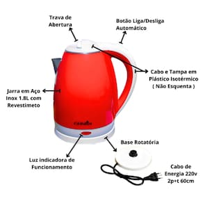 Chaleira Eletrica 1.8L Ellegance Red Inox 220V