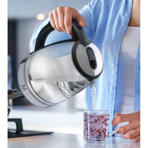A Chaleira elétrica jarra de vidro, foi desenvolvida na medida certa, com capacidade de 1.8L que atende a toda família, a Chaleira ferve a água em poucos minutos, assim você tem a sua bebida quentinha em um piscar de olhos. Aqueça ou ferva a água de acordo com a sua bebida, deixando sempre na temperatura ideal pra você! Não se preocupe em manusear a chaleira quente, pois possui alça fria com botão de abertura, garantindo maior segurança durante o transporte. Além de segura, conta com jarra de vidro e um design moderno com acabamento em inox, proporcionando a visualização do preparo e deixando seu ambiente ainda mais lindo!