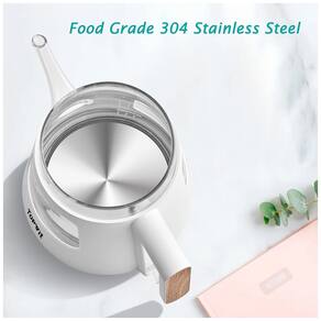 Chaleira elétrica 1L com desligamento automático, corpo em aço inoxidável e vidro borossilicato, design de parede dupla, infusor de chá removível e bico gooseneck.Características