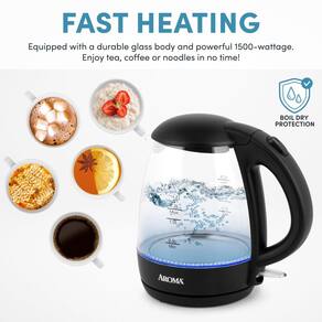 Chaleira elétrica de vidro AROMA® 1,2 L/5 xícaras com derramamento sem fio, tampa de liberação de gatilho, desligamento automático, preta (AWK-151B)