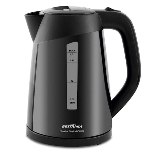 Chaleira Elétrica BCH06P 1,7L 127v - Britania Tenha água quente de forma rápida e simples, para suas receitas e bebidas favoritas. A Chaleira Elétrica BCH06P possui capacidade para 1,7 litro, com sistema de segurança de desligamento automático quando a água entra em estado de fervura. Você ainda conta com sua base removível, botão para abertura de tampa, garantindo maior segurança durante o manuseio. Ideal para preparar café, cappuccino, chá, chimarrão, mamadeira e muito mais. Possui desligamento automático, quando a água ferve a chaleira desliga; Portátil Pode ser levada à mesa. Botão Liga/Desliga Tampa com abertura acionada por botão Jarra sem fio Luz indicadora de funcionamento Desligamento automático; Capacidade de 1.7L Jarra com movimento rotativo 360 Imagens Meramentes Ilustrativas