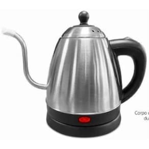 Chaleira Elétrica Bico Fino Mimo Style com capacidade de 1,2L, interior e exterior em aço inoxidável, alça térmica, base destacável e indicador LED.Características