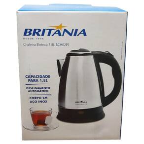 Conteúdo na embalagem: 01 chaleira elétrica britânia 1,8l bch02pi preto com inox Manual e certificado de garantia Ficha técnica - voltagem: 110v Ean: 7891356075056