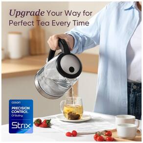 Chaleira elétrica com corpo em aço inoxidável 304 e vidro borossilicato. Possui desligamento automático após a fervura e proteção contra fervura a seco. Abertura ampla para limpeza. Tecnologia British STRIX para fervura rápida (3-7 minutos). Bico em V sem gotejamento e tampa antiqueimadura. Indicador LED azul.Vendido e entregue por Ecletiq