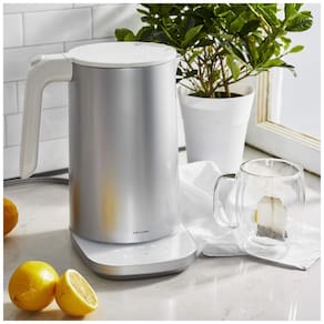 Chaleira elétrica 1.5L com 6 predefinições, controle de toque, tela oculta, design moderno, aço inoxidável com toque frio e funções de economia de energia.Características