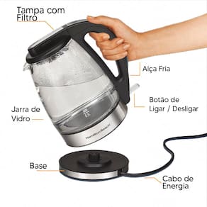 Com potência elevada, a chaleira Hamilton Beach ferve a água mais rápido do que no fogão ou no micro-ondas, permitindo que você desfrute do seu chá ou café em pouco tempo.