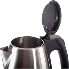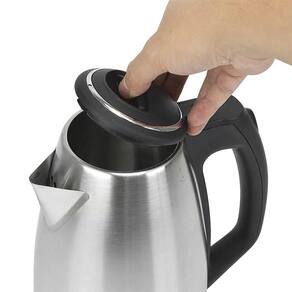 Chaleira elétrica portátil em inox com capacidade de 1,8 litros, ideal para escritórios ou uso em casa. Possui corpo de aço inoxidável, elemento de aquecimento oculto, botão de liga/desliga com luz indicadora, cabo de toque frio, proteção para não ferver a seco e desligamento automático ao atingir a fervura.Características