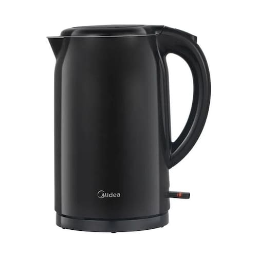 Chaleira elétrica com jarra em aço inoxidável e design Double Wall para maior segurança e eficiência. Possui capacidade de 1,7L, desligamento automático e indicador de nível de água.