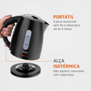 DESLIGAMENTO AUTOMÁTICO: O dispositivo de segurança, desliga automaticamente após o aquecimento, impedindo que a água ferva até secar. Mais segurança e economia de energia.