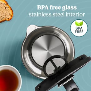 Nelo As chaleiras elétricas podem ferver sua água em apenas 3 minutos com 1100 W de potência para preparar chá perfeito, café e qualquer outra bebida quente. A janela de vidro elegante e conveniente permite que você monitore facilmente os níveis de água sem abrir a tampa. Função de aquecimento ativada para temperaturas sustentadas. Construção de parede dupla segura ao toque, feita com vidro borossilicato de alta qualidade para manuseio seguro e fácil. Ótimo presente para mãe, presente de inauguração de casa, presente para amigos e familiares ou qualquer amante de chá. Aprovado pela cETL com padrões de segurança ideais e durabilidade. Chaleira digital de parede dupla sem fio de 1,7 L, desligamento automático, proteção contra fervura e secagem, design sem fio com base giratória antiderrapante de 360°. Feito de vidro de borossilicato de alta qualidade livre de BPA e elemento de aquecimento oculto para facilitar a limpeza. Garantia de 1 ano. - Ebulição rápida – as chaleiras elétricas Nelo podem ferver sua água em apenas 3 minutos com 1100 W de potência para preparar chá perfeito, café e qualquer outra bebida quente. - Janela de vidro transparente de 360° – A janela de vidro elegante e conveniente permite que você monitore facilmente os níveis de água sem abrir a tampa. Função de aquecimento ativada para temperaturas sustentadas. - Parede legal – Construção de parede dupla segura ao toque, feita com vidro borossilicato de alta qualidade para manuseio seguro e fácil. Ótimo presente para mãe, presente de inauguração de casa, presente para amigos e familiares ou qualquer amante de chá. - Seguro e conveniente – aprovado pela CETL com padrões de segurança ideais e durabilidade. Chaleira digital de parede dupla sem fio de 1,7 L, desligamento automático, proteção contra fervura e secagem, design sem fio com base giratória antiderrapante de 360°. Feito de vidro de borossilicato de alta qualidade livre de BPA e elemento de aquecimento oculto para facilitar a limpeza. Garantia de 1 ano. - Atendimento ao cliente – Na Nelo, nossos clientes são nossa principal prioridade e estamos aqui para garantir que você aproveite ao máximo sua compra! Estamos sediados em Nova Jersey e nossa equipe dedicada está aqui para responder a quaisquer perguntas ou resolver quaisquer problemas que você possa ter.