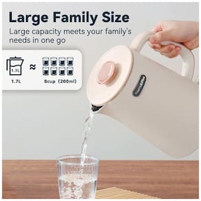 Desfrute de praticidade e conforto com a Chaleira Elétrica Nueve&Five de 1,7 litros. Com capacidade para servir até 6-7 pessoas de chá, café ou outras bebidas quentes, é perfeita para reuniões ou receber visitas. Seu design de parede dupla mantém a temperatura da água por mais tempo, enquanto a alça com toque frio permite um manuseio seguro. Com potência de 1200W, ferve a água rapidamente, sendo ideal para o dia a dia agitado. Feita em aço inoxidável 304, garante bebidas puras e saudáveis, além de contar com desligamento automático e proteção contra funcionamento a seco. A chaleira perfeita para preparar chá, café, leite e muito mais!