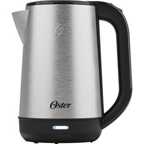 Chaleira elétrica Oster Inox com capacidade de 2 litros, 1200W (127V) ou 1850W (220V), fervura rápida, desligamento automático, tampa com puxador, alça ergonômica isotérmica, indicador luminoso e base antiderrapante com porta fio.Acessórios
