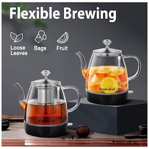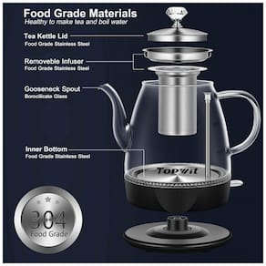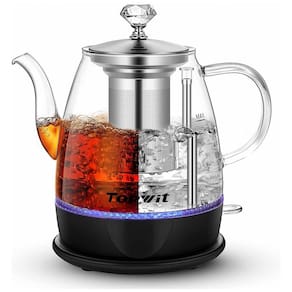 Chaleira elétrica Topwit 1L com jarra de vidro borosilicato, infusor de chá removível, desligamento automático, proteção contra fervura a seco e indicador LED azul.Características
