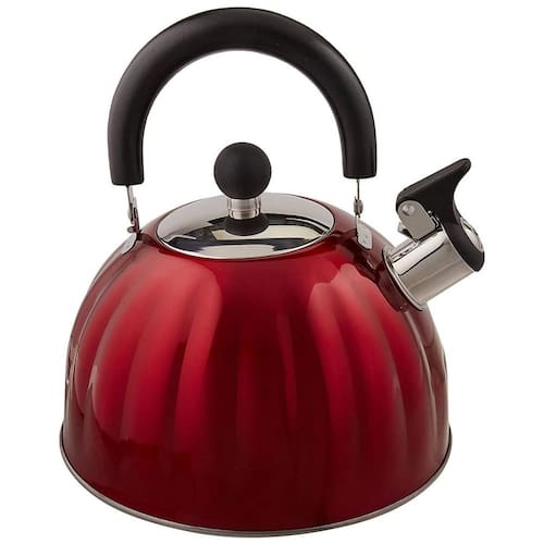 Chaleira construída em aço inoxidável sólido, Chaleira assobiando alerta quando a água está fervendo, Tampa do bico flip up para despejar e fácil e um gatilho para ficar frio para segurança, Lavagem à mão recomendada, Cabo de nylonVendido e entregue por Ecletiq
