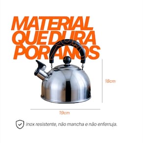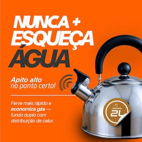 Mais praticidade e elegância no preparo das suas bebidas quentes favoritas Ideal para quem busca um utensílio bonito resistente e funcional no dia a dia Com capacidade de 2 litros é perfeita para preparar chá café chimarrão e outras bebidas para toda a família Produzida em aço inox de alta qualidade conta com acabamento moderno resistente à corrosão fácil de limpar e com brilho duradouro O inox não altera o sabor da água garantindo pureza e qualidade O cabo em nylon com isolamento térmico proporciona segurança e conforto mesmo com a chaleira quente A tampa é removível facilitando o abastecimento e a limpeza e a alça conta com gatilho para abertura do bico trazendo ainda mais praticidade Possui apito sonoro que avisa quando a água está fervendo evitando desperdício e superaquecimento Compatível com fogões a gás elétricos e vitrocerâmicos Não é indicado ultrapassar a capacidade de 2 litros Informações técnicas Material da chaleira aço inox Material do cabo nylon com isolamento térmico Capacidade 2 litros Cor inox com detalhes em preto Peso aproximado 500g Apito sonoro Tampa removível Alça com gatilho para abertura do bico Compatível com fogões a gás elétricos e vitrocerâmicos Conteúdo da embalagem 1 chaleira com apito em inox 2 litros