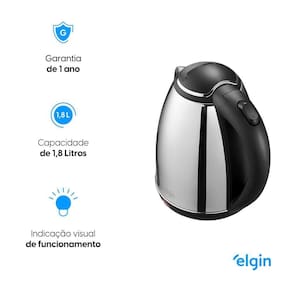 Para maior rapidez na preparação da sua bebida preferida, a Chaleira Elétrica Elgin é o modelo ideal. A Elgin oferece garantia expressa de 1 ano para você usar sua chaleira sem preocupação.