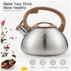 Capacidade: 2,08 litros Dimensões: aproximadamente 21 cm diâmetro x 22 cm altura (incluindo alça) Peso unitário: 750 g Peso do pacote: aproximadamente 900 g Materiais: Aço inoxidável, alça em madeira sintética, tampa em inox Acabamento: Prata escovado, alça preta com textura de madeira Compatibilidade: Fogão indução, gás, elétrico, radiante Apito: Sonoro (alerta de fervura) Tampa do bico: Sistema botão Touch Lavagem: Sugestão de limpeza manual (não indicado para lava-louças) Livre de: PFOA e toxinas Conteúdo da caixa: 1 chaleira LUXGRACE, manual do usuário Manual do usuário: Idioma Inglês Marca: Não Informado