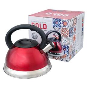 A chaleira em inox vermelha com apito e fundo duplo é a adição perfeita para a sua cozinha, combinando elegância e funcionalidade em um único produto. Fabricada em aço inoxidável de alta qualidade, esta chaleira não apenas proporciona um visual moderno, mas também assegura duração e resistência ao longo do tempo. Seu acabamento refinado em aço escovado realça a beleza do utensílio, tornando-o um elemento decorativo em qualquer espaço culinário.