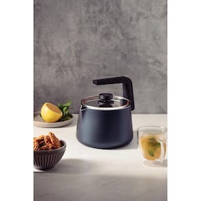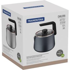 A Chaleira Azul Marinho Tramontina com revestimento antiaderente Starflon Max deixará a higienização do item muito mais simples. Sem contar a espessura de 1,8mm que também proporciona agilidade para a fervura e distribuição proporcional do calor. Além disso, sua alça e pegador são produzidos em material antitérmico, trazendo mais conforto e segurança no momento de manuseio do item. Sua tampa de vidro temperado mantém a umidade dentro da chaleira, evitando a perda de líquidos nos momentos de fervura, apenas com uma saída de vapor no bico para circular o excesso. Características: Marca: Tramontina Linha: Chaleiras Cor: Azul Marinho Material: Alumínio Material do Cabo: Baquelite Antitérmico Antiaderente: Sim Espessura: 1,8mm Capacidade: 2,4L Fogões Compatíveis: Gás, elétrico e vitrocerâmico Compatível com Lava-louças: Sim Possui Apito: Não Material da Tampa: Vidro Temperado