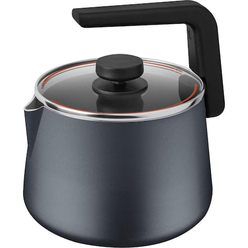 A Chaleira Azul Marinho Tramontina com revestimento antiaderente Starflon Max deixará a higienização do item muito mais simples. Sem contar a espessura de 1,8mm que também proporciona agilidade para a fervura e distribuição proporcional do calor. Além disso, sua alça e pegador são produzidos em material antitérmico, trazendo mais conforto e segurança no momento de manuseio do item. Sua tampa de vidro temperado mantém a umidade dentro da chaleira, evitando a perda de líquidos nos momentos de fervura, apenas com uma saída de vapor no bico para circular o excesso. Características: Marca: Tramontina Linha: Chaleiras Cor: Azul Marinho Material: Alumínio Material do Cabo: Baquelite Antitérmico Antiaderente: Sim Espessura: 1,8mm Capacidade: 2,4L Fogões Compatíveis: Gás, elétrico e vitrocerâmico Compatível com Lava-louças: Sim Possui Apito: Não Material da Tampa: Vidro Temperado