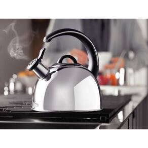 - Para avisar quando ela entra em ebulição, a chaleira possui apito, que é acionado por meio do vapor no momento em que se inicia a fervura.