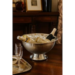 Muito prática, a peça acomoda bastante gelo e permite o repouso de variados tipos de bebidas, entre garrafas e latas, ou ainda apenas gelo para consumo. Possui formato redondo com belíssimo acabamento brilhante no lado externo e escovado na parte interna.
