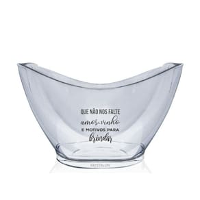 Seja um champagne, espumante ou até cerveja a champanheira oval é perfeita para deixar sua bebida geladinha, a Champanheira Oval Grande da KrystalON é indispensável para sua festa bar ou evento. Vem com a personalização perfeita pra você curtir ainda mais o momento com a galera. Especificações: Material: Acrílico PS, Altura: 24 cm, Diâmetro: 27,2 x 40 cm, Cor: Transparente, Capacidade: 9 L, Tamanho: Único, Quantidade: 1 Peça