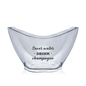 Seja um champagne, espumante ou até cerveja a champanheira oval é perfeita para deixar sua bebida geladinha, a Champanheira Oval Grande da KrystalON é indispensável para sua festa bar ou evento. Vem com a personalização perfeita pra você curtir ainda mais o momento com a galera. Especificações: Material: Acrílico PS, Altura: 24 cm, Diâmetro: 27,2 x 40 cm, Cor: Transparente, Capacidade: 9 L, Tamanho: Único, Quantidade: 1 Peça Ean: 7897581934472