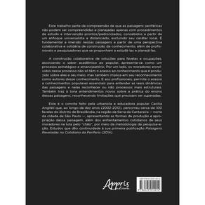 Este trabalho parte da compreensão de que as paisagens periféricas não podem ser compreendidas e planejadas apenas com procedimentos de estudo e intervenção prontos/padronizados, concebidos a partir de um enfoque universalista e distanciado, excluindo seu caráter local. É fundamental a imersão nessas paisagens a partir de uma perspectiva colaborativa e solidária de construção de conhecimento, além de profissionais e pesquisadores que se proponham a estudá-las e planejá-las. A construção colaborativa de soluções para favelas e ocupações, associando o saber acadêmico ao popular, apresenta-se como um processo estratégico e emancipatório. Por um lado, os moradores envolvidos nesse processo não só têm o acesso ao conhecimento que é produzido sobre eles e seu meio, mas também implica em seu reconhecimento como autores desse conhecimento. E aos profissionais, permite o acesso a conhecimentos populares essenciais para entender as reais dinâmicas das paisagens e nelas reconhecer ou não processos mais estruturais. Também traz à tona entendimentos novos sobre a prática do ensino dessas paisagens, reconhecendo limitações que precisam ser superadas. Este é o convite feito pela urbanista e educadora popular Cecilia Angileli que, ao longo de dez anos (2002-2012), percorreu cerca de 100 favelas do distrito de Brasilândia, na região da Serra da Cantareira — norte da cidade de São Paulo —, apresentando as formas de produção e apropriação dessa paisagem, além dos enfrentamentos cotidianos de seus moradores na luta pelo “chão”, por meio da metodologia da pesquisa-ação. Estudos que dão continuidade à sua primeira publicação Paisagens Reveladas no Cotidiano da Periferia (2014). Ean: 9786525014012