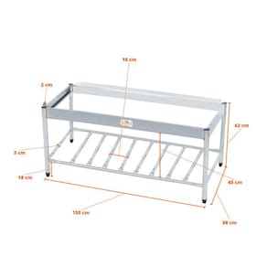 - Cavalete totalmente fabricado em aço inoxidável 304 com sapatas plásticas, para evitar o deslizamento.
